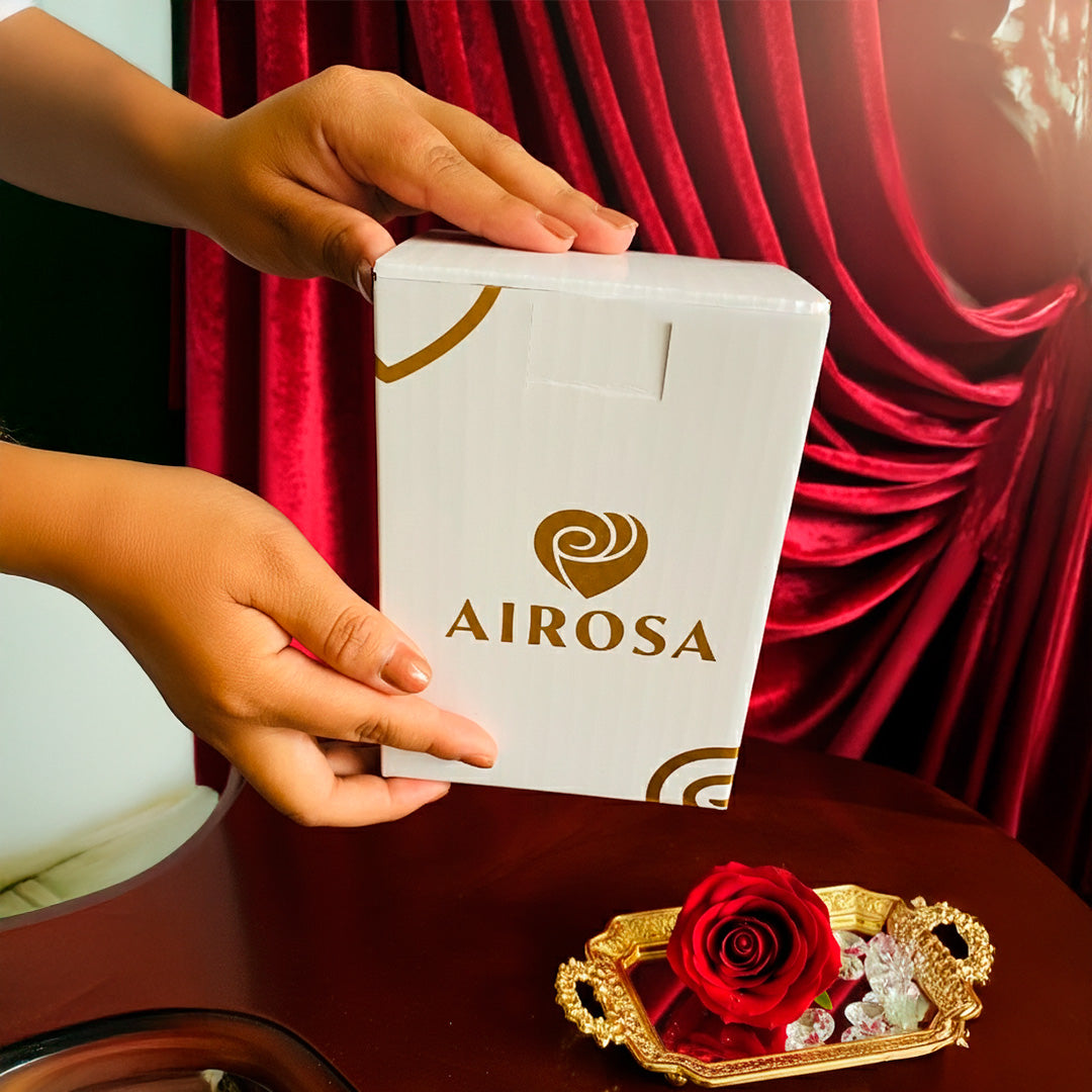 - Estética Elegante: Box negro de alta calidad con el logo de AIROSA en dorado y detalles artesanales.